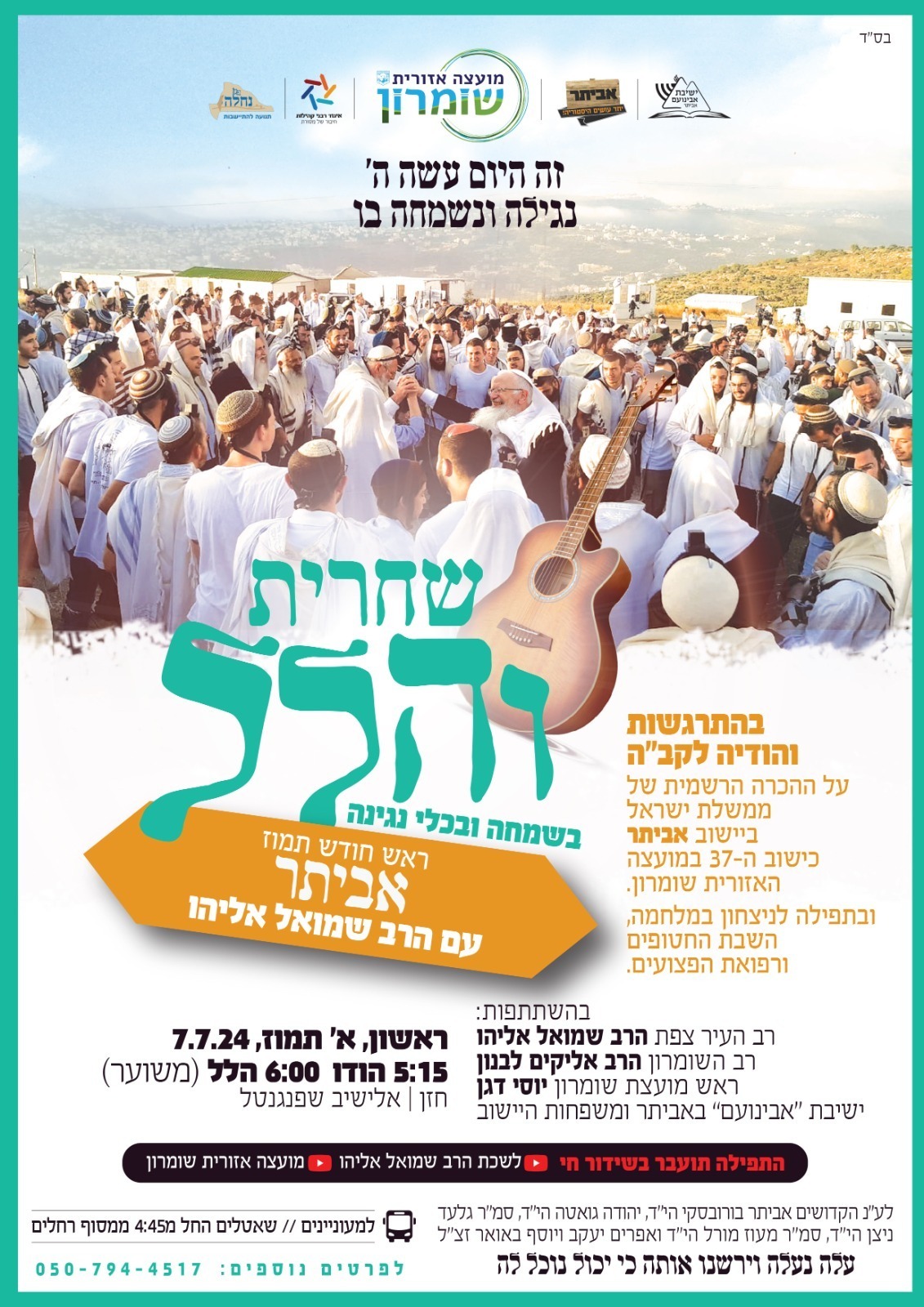 תושבי השומרון מוזמנים לתפילת ראש חודש באביתר!