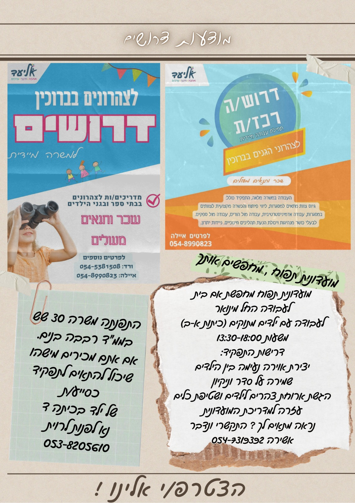 מודעת דרושים - רכז/ת לצהרוני הגנים בברוכין