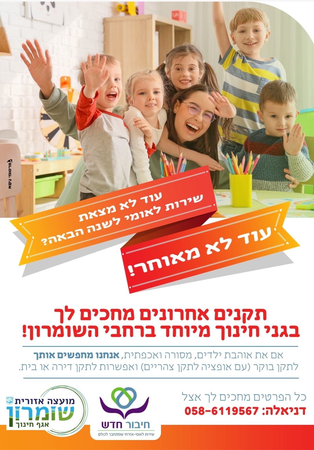הצטרפי אלינו לשנת שירות משמעותית בגני חינוך מיוחד בשומרון!
