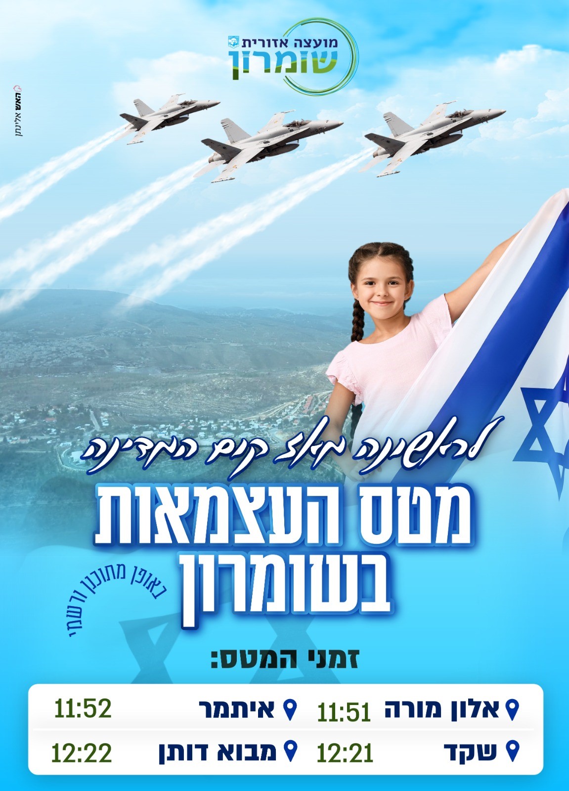 מטס יום העצמאות לראשונה בשומרון! לזמנים לחצו כאן