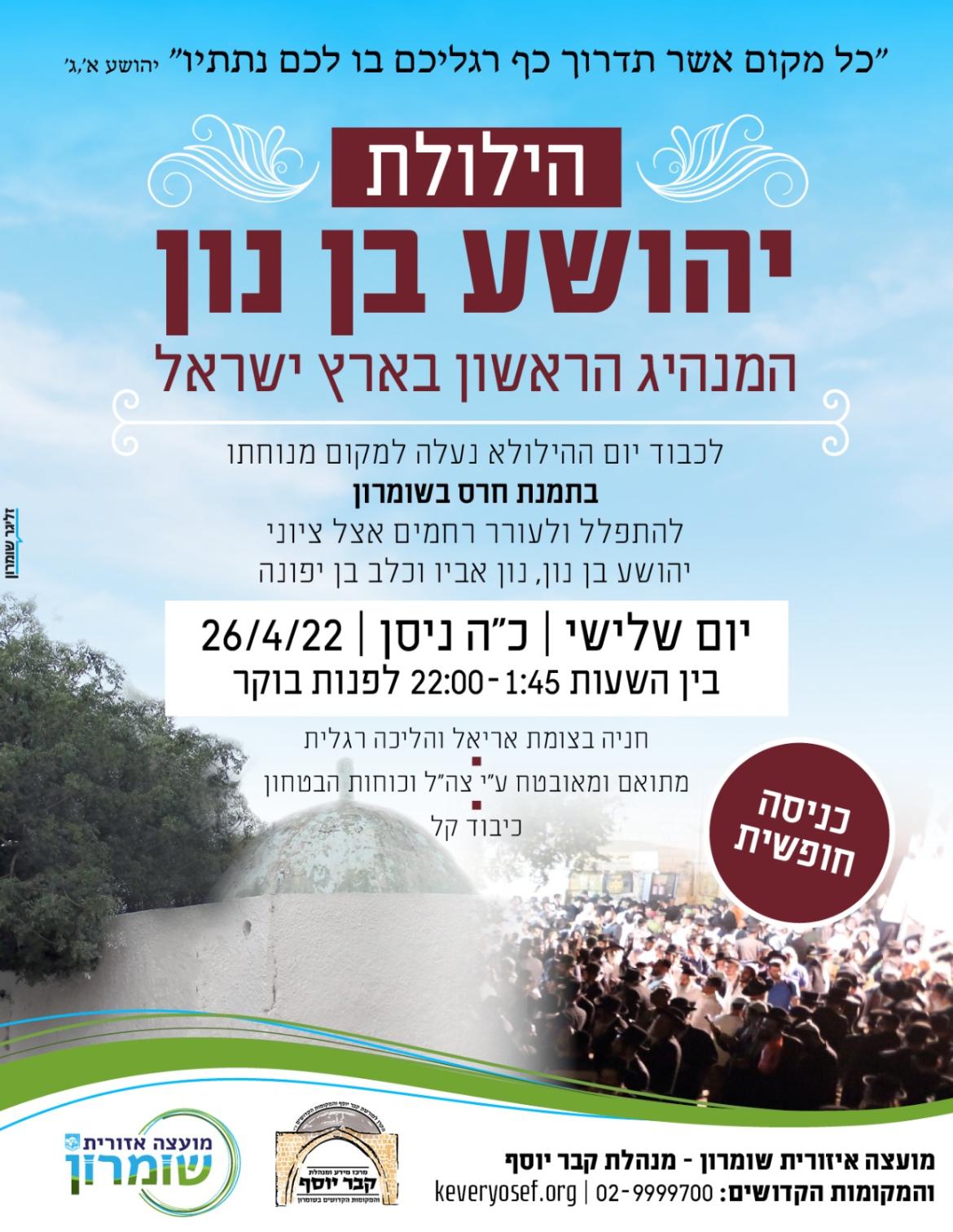 הילולת יהושע בן נון במקום מנוחתו בתמנת חרס בשומרון מרחק הליכה מצומת אריאל