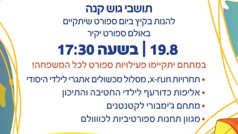 קיץ ספורטיבי בשומרון - תושבי גוש קנה אתם לא רוצים לפספס את זה!